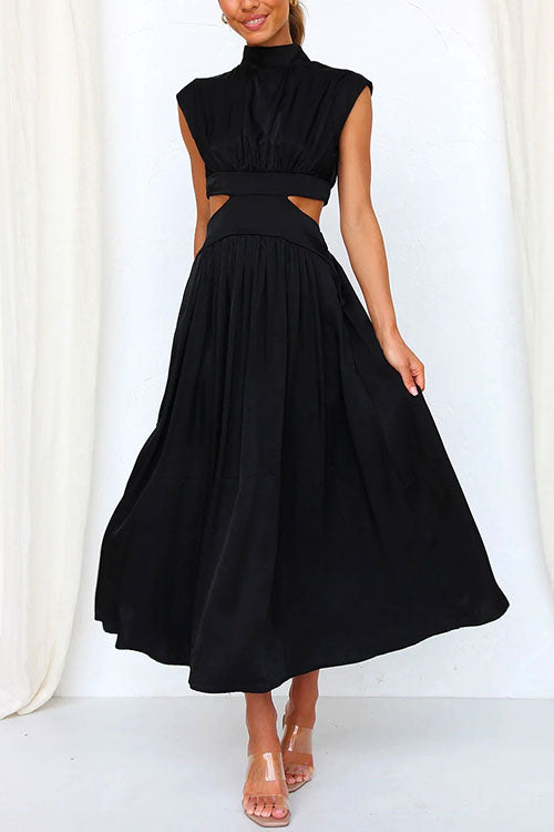 Karleedress Mockneck Cut Out Waist Pockets Swing Dress