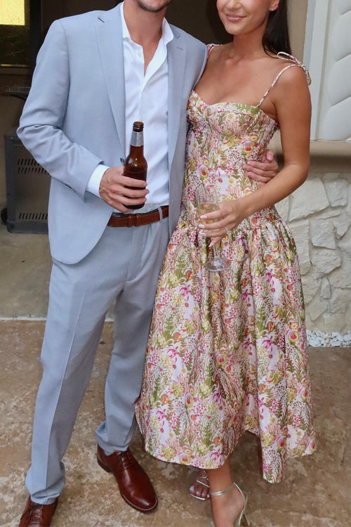Tie Shoulder Drop Waist Jacquard Midi Cami Dress – Karleedress