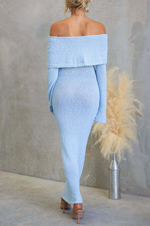 Karleedress Off Shoulder Long Sleeves Bodycon Stretchy Maxi Dress