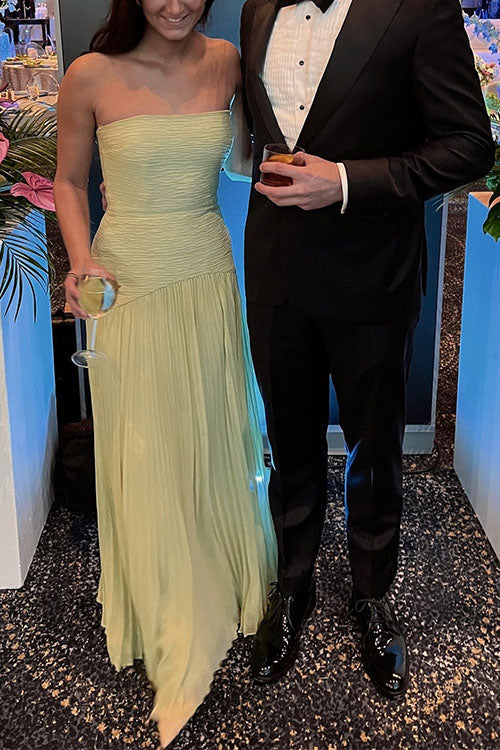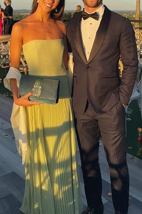 Karleedress Strapless Tube Patchwork Pleated Maxi Dress
