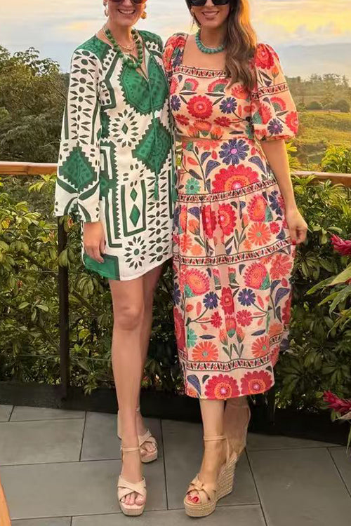 High Rise Floral Print Midi Skirt